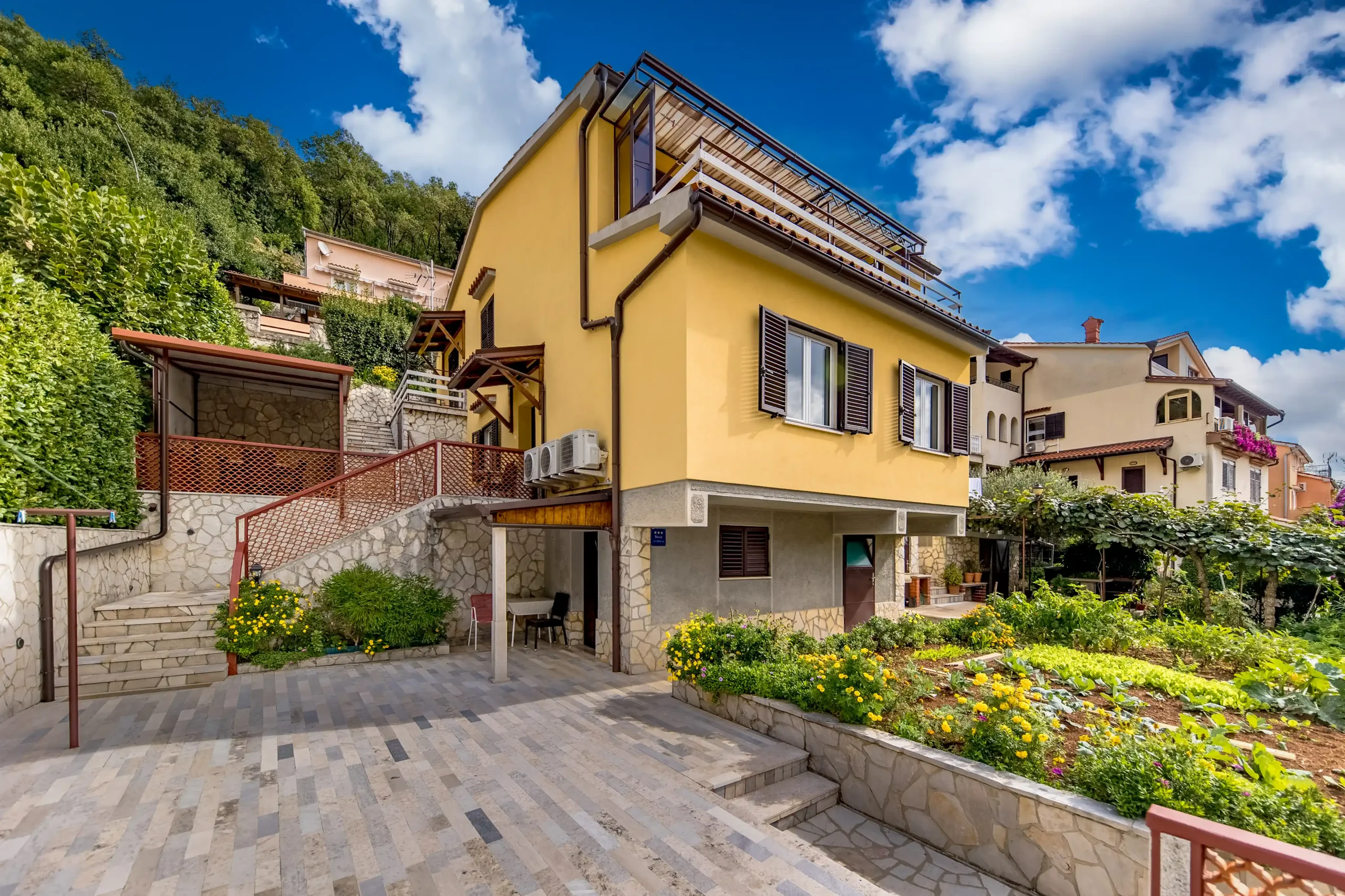 Tražite pravo mjesto za Vaš odmor? Dobrodošli u našu obiteljsku kuću Sandalj koja se nalazi u najljepšem i najmirnijem dijelu Mošćeničke Drage, 150 metara od mora i prekrasne šljunčane plaže, jedne od najljepših na Jadranu i 100 m od živahnog centra mjesta.